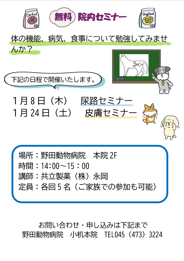 普段通りのわんにゃんドックも行なっているので、より幅広い検査をご希望の方は受付かお電話でご予約ください。