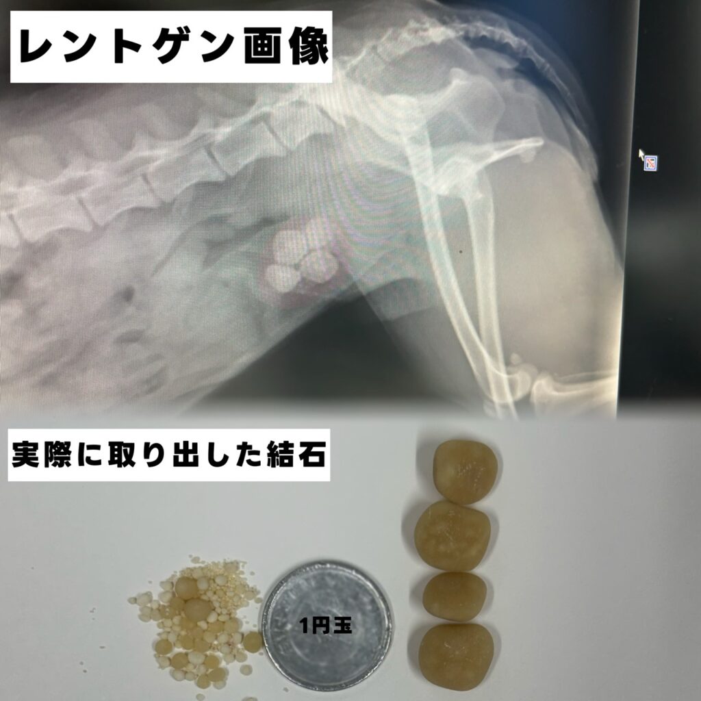 食事療法を行なっておりましたが、結石が大きくなったため外科的摘出に踏み切りました。